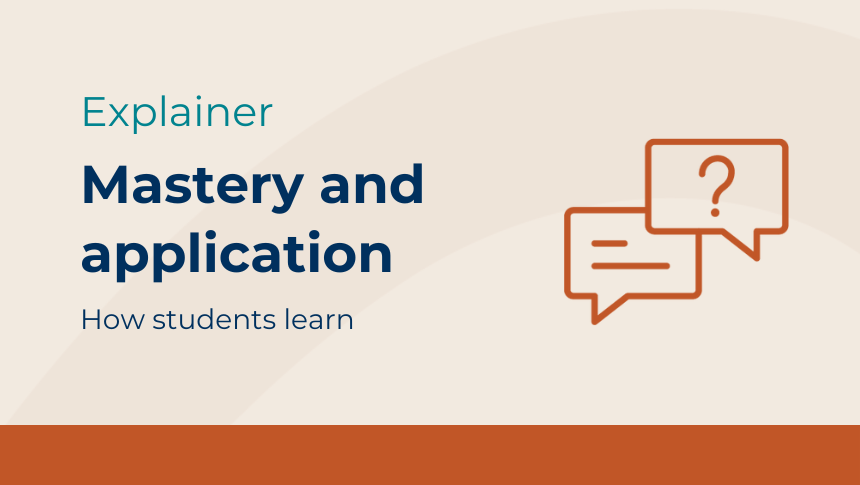 Explainer Apr 2025 Mastery and application Mastery of learning is the accumulation and retention of knowledge, conceptual understanding and skills, and knowing when and how to use them. Application of learning includes transferring information to both familiar and new contexts, which leads to deeper understanding and more sophisticated use of knowledge. Mastery is fundamental to students’ achievement in school and their lives beyond formal education.