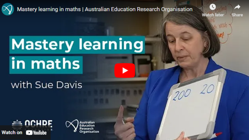 Video Dec 2022 Mastery learning in maths Mastery learning is a teaching practice that evidence says makes a difference. In this video, Sue Davis explains how she uses mastery learning in her mathematics lessons.